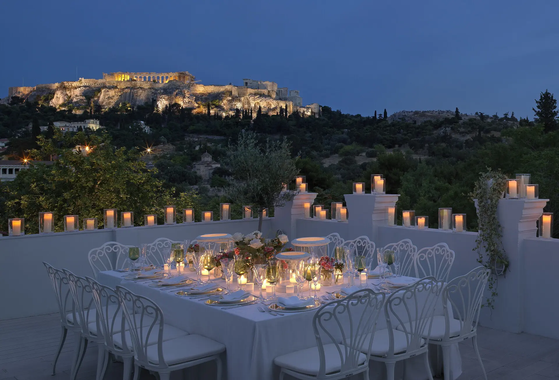 Durante os meses mais quentes, o restaurante atende no sétimo andar do edifício e proporciona espaço exclusivo aos seus clientes, ao ar livre e com vista panorâmica da Acrópole.