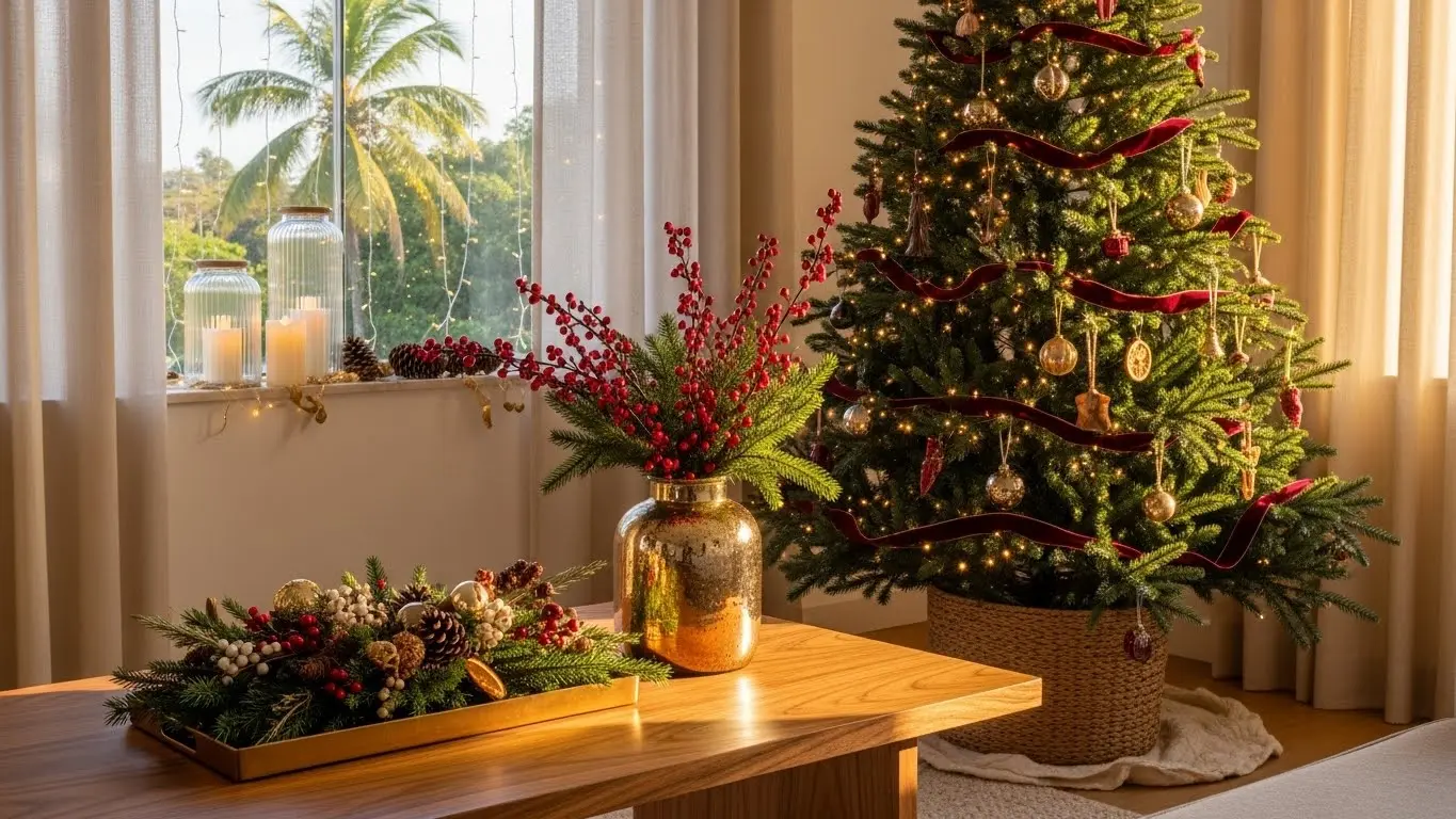 É um pequeno prazer que sempre vale a pena, mas a verdade é que decoração de Natal virou sinônimo de pressão. Você passa horas no Pinterest, salva trinta referências, e quando olha para a sala — e, se ela for como da maioria, com o sofá que não combina com nada, a estante cheia de coisas do dia a dia e a janela sofrendo no sol — parece impossível chegar lá.