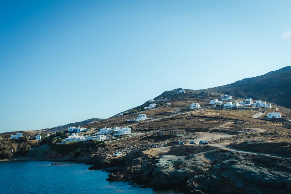 O interior montanhoso de Mykonos revela um lado completamente diferente da ilha. Repleto de pequenas aldeias tradicionais, oferece um contraste fascinante com a agitação alegre da costa, permitindo aos visitantes experimentar a Grécia rural autêntica.
